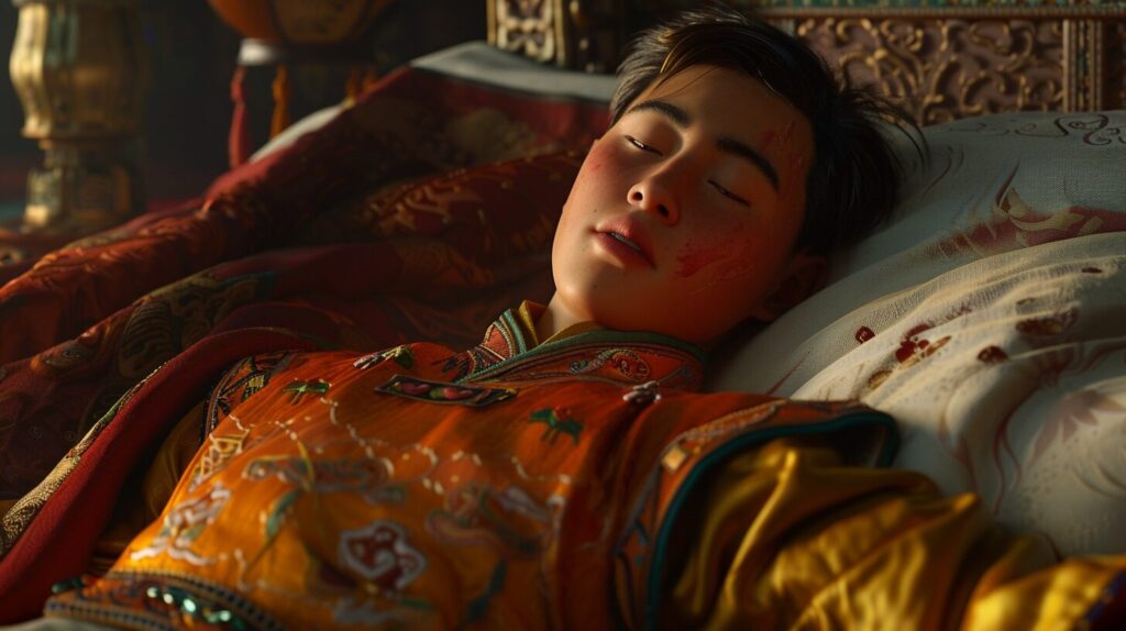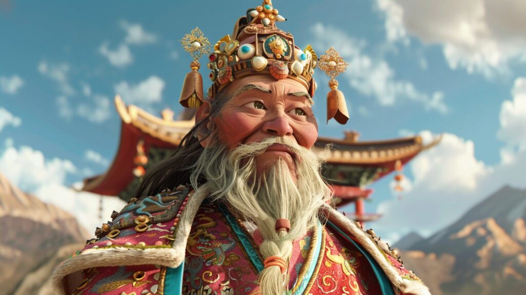 Böyle söyleyerek çuvalı yere bırakmış ve oradan uzaklaşmış. Adam da kutsal bir lama kılığına girerek tsamba dilenmeye başlamış ve dua çarkını ve çuvalı alarak kente yanlışsız yola çıkmış. Kente vardığında hükümdarın oğlunun ölmek üzere olduğunu duymuş ve oğlunun nesi olduğunu anlamış. Bu yüzden saraya gidip yalvarmış ve hükümdarın kâhyası ona, “Sen çok kutsal bir adamsın, tahminen hükümdarın oğlunun güzelleşmesi için bir şeyler yapabilirsin” demiş. Adam, hükümdarı görmesine müsaade verirlerse deneyeceğini söylemiş.