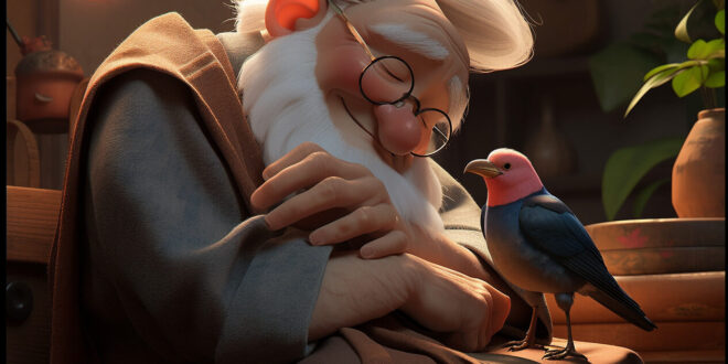 Uzun, çok uzun vakit evvel Japonya’da yaşlı bir adam ve karısı yaşardı. Yaşlı adam güzel kalpli, çalışkan bir ihtiyardı fakat karısı huysuzdu ve huysuzluğuyla konutun tüm huzurunu kaçırıyordu. Sabahtan akşama kadar daima bir şeylerden yakınır, daima şikâyet ederdi. Yaşlı adam onun bu huysuzluğuna aldırış etmiyordu. Günün büyük bir kısmında tarlada çalışıyor ve çocuğu olmadığı için meskene geldiğinde oyalanmak için evcil bir serçe besliyordu. Küçük kuşu, güya kendi çocuğuymuş üzere seviyordu.