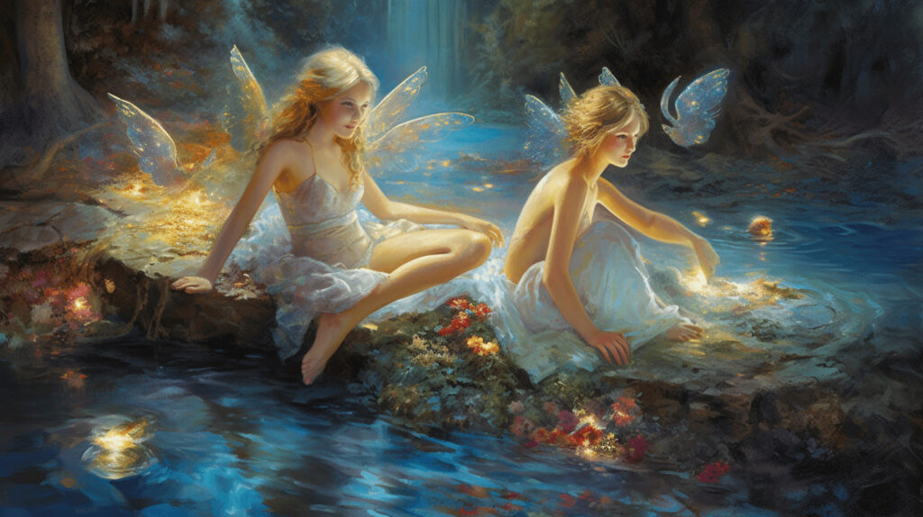 Tabii ki, o gittiğinde, açtığım birinci kapı bu oldu. İçinde bir derenin aktığı geniş bir bahçe gördüm. Tam o sırada üç kuş geldi ve derenin kenarına kondu. Çabucak en hoş üç bayana dönüştüler. Yıkanmayı bitirdikten sonra elbiselerini giydiler ve ben onları izlerken tekrar kuşa dönüşüp uçup gittiler.