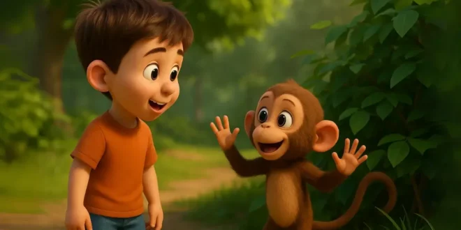 Efe, annesinden bir muz alıp sessizce çalılığın yanına dönmüş. Maymun hâlâ oradaymış, gözleriyle Efe’yi takip ediyormuş. Efe yavaşça eğilip muzu uzatmış. Maymun evvel muzun ucunu koklamış, sonra minik elleriyle tutup iştahla yemeye başlamış. Her lokmasında yüzü biraz daha canlanmış, güya teşekkür eder üzere Efe’ye bakmış.