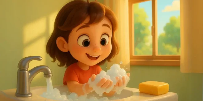 Nehir bunları duyunca başını eğmiş. O an geçmişte sabunsuz geçirdiği tüm dakikaları tek tek hatırlamış. Annesi, kızının omzuna yavaşça dokunarak, “Bundan sonra sabunla tanışmaya ne dersin?” demiş. Irmak başını yavaşça sallamış. Birinci sefer, el yıkamanın yalnızca büyüklerin kuralı değil, kendisini koruyan bir alışkanlık olduğunu hissetmiş.