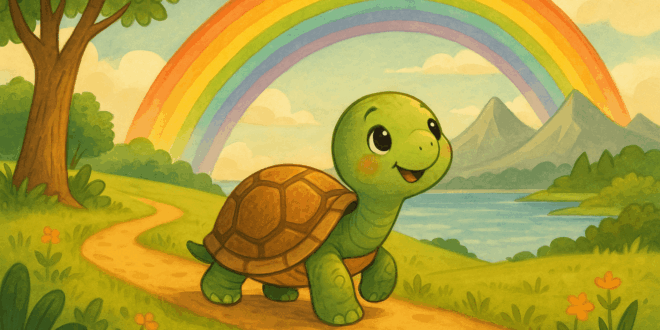 Bir varmış, bir yokmuş. Uçsuz bucaksız yemyeşil bir ormanın kıyısında, çimenler arasında minicik bir kaplumbağa yaşarmış. Adı Mino‘ymuş. Mino her gün yavaş yavaş yürür, çiçekleri koklar, uğurböcekleriyle konuşurmuş. Ama Mino’nun en çok sevdiği şey, yağmurdan sonra gökyüzünde beliren gökkuşağını izlemekmiş.