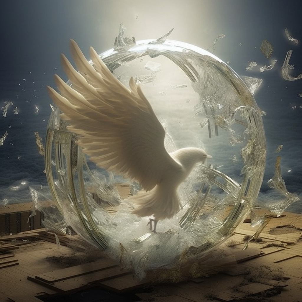 Melekleri görmek için onunla cennete bile uçmak istediler, lakin ne kadar yükseğe uçarlarsa cam o kadar kayganlaştı ve onu zorlukla tutabildiler. Sonunda ellerinden kaydı, yere düştü ve milyonlarca modüle ayrıldı.