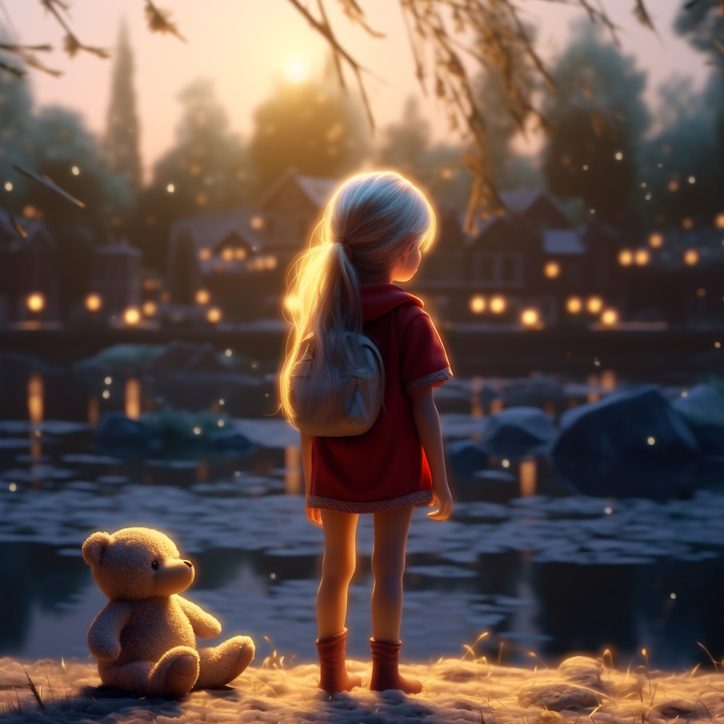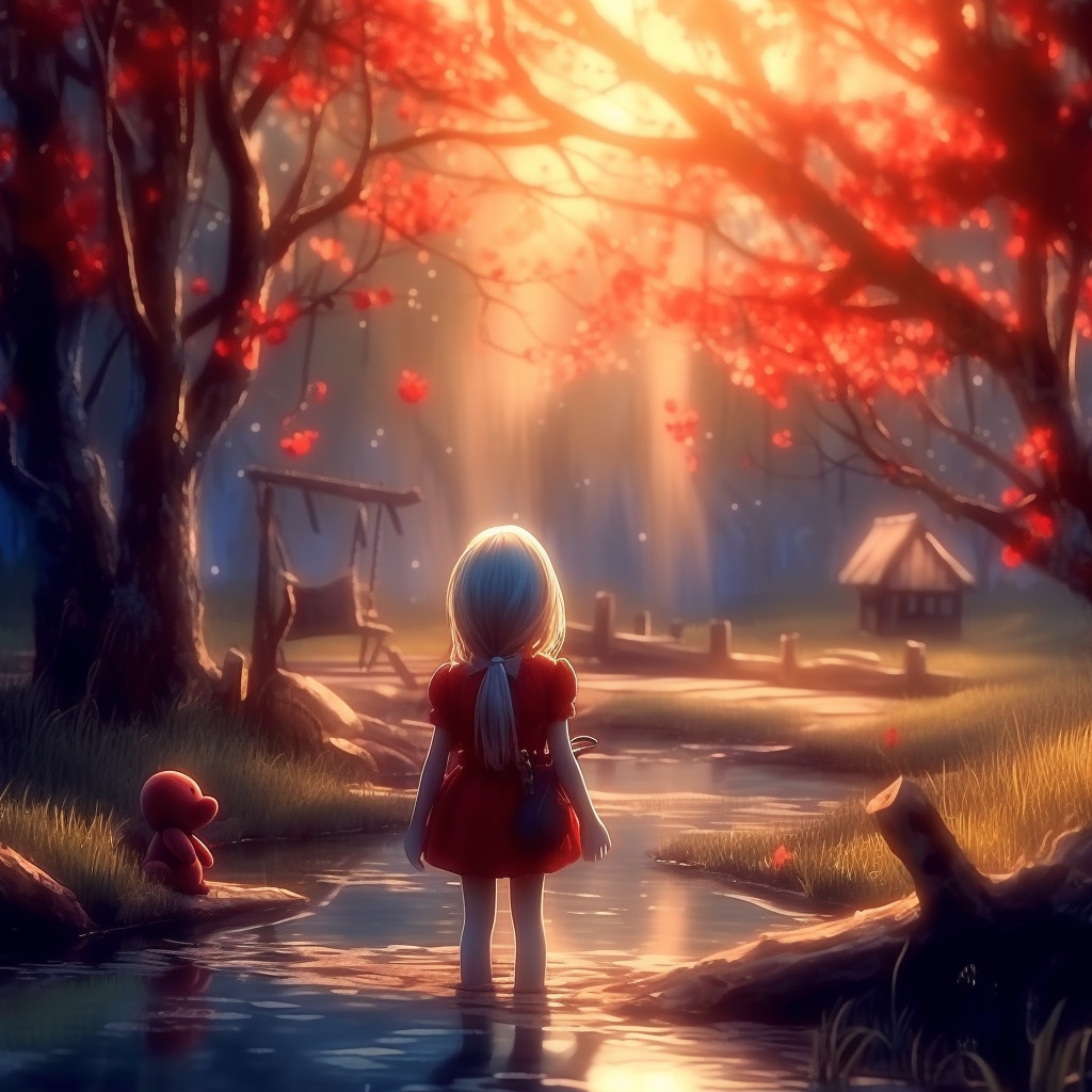 Hala uyumakta olan yaşlı büyükannesini öptüğünde saat hayli erkendi; sonra kırmızı ayakkabılarını giydi ve tek başına kasaba kapısından çıkıp ırmağa hakikat gitti.