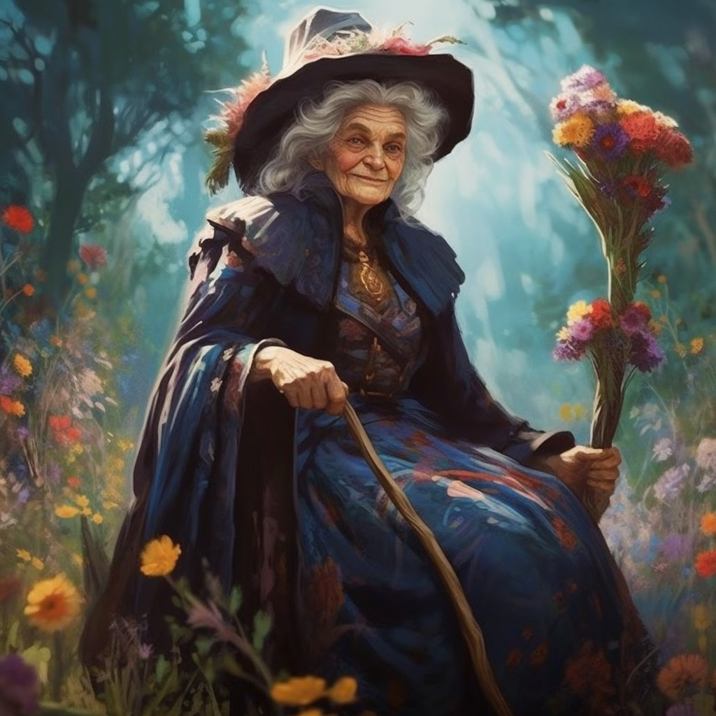 Bunun üzerine Gerda daha da yüksek sesle seslendi ve konuttan koltuk değneğine yaslanmış çok yaşlı bir bayan çıktı. Güneşten korunmak için büyük bir şapka takmıştı ve şapkanın üzerinde bir sürü hoş çiçek vardı.