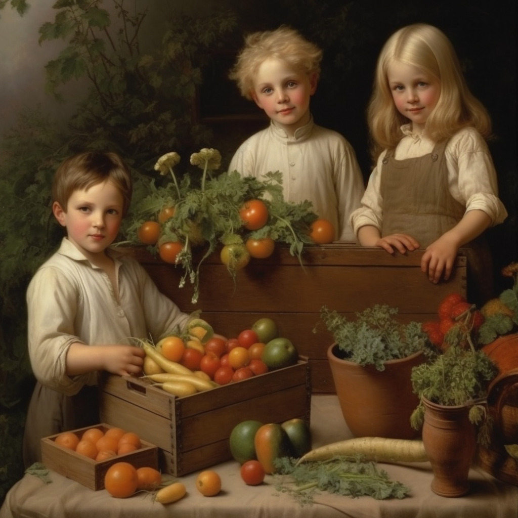 Bu çocukların her birinin ebeveynlerinin, içinde kendi kullanımları için mutfak zerzevatları yetiştirdikleri büyük bir ahşap kutuları vardı ve her kutuda bereketli bir halde büyüyen küçük bir gül ağacı vardı.