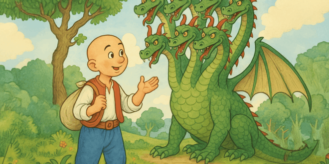 Mağaranın önünde bekleyen o devasa yılan ejderha tam yedi başlıydı. Kükreme sesi yeri titretiyordu. Hepsi ağzı açık, hareketli zehirli dilleriyle gözüktü. Köylülerin söyledikleri doğruydu: Gözleri alevle yanıyor, her baş ayrı güçteydi.
