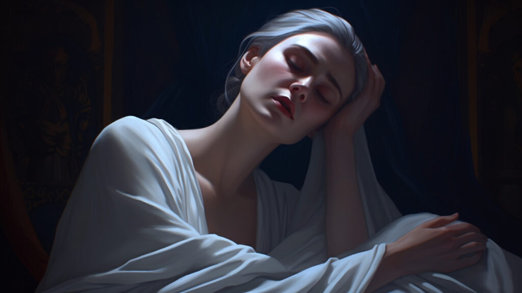Üçüncü gece kız mışıl mışıl uyudu, lakin yanındaki zavallı bayan gözlerini bir an olsun kapatamadı. Karanlık önseziler içinde kıvranıyor, başına bir felaket geleceğinden korkuyor ve tespihini sayarak sabırla dua ediyordu. Uyuyan genç kız ansızın alay etmeye ve gülmeye başladı.