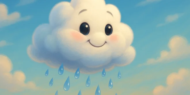 Minik bir çocuk, annesiyle yürüyormuş. Küçük Bulut’un damlaları başlarına düşmüş. Çocuk ellerini gökyüzüne uzatıp gülümsemiş:
