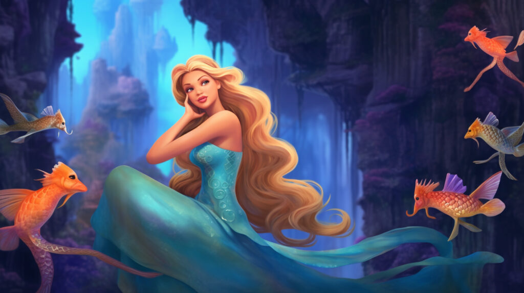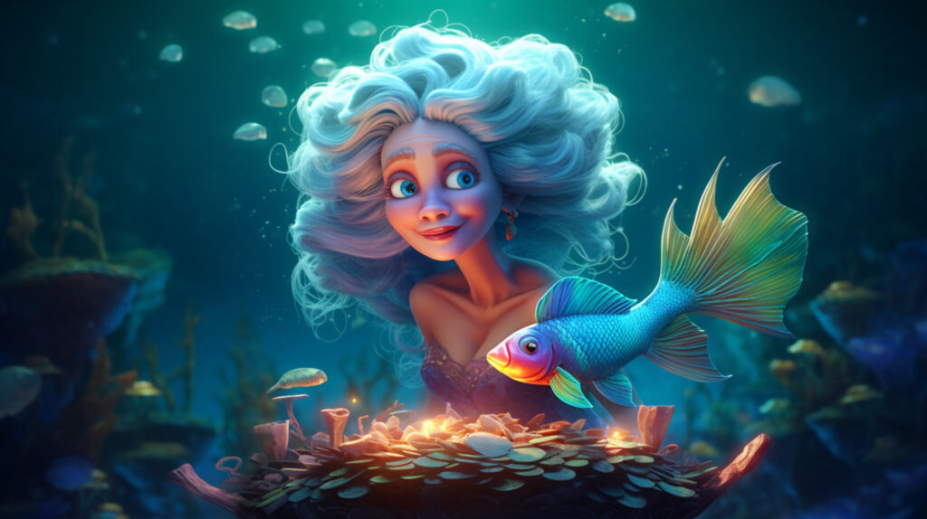 “Artık büyüdün,” dedi büyükannesi yaşlı dul bayan. “Gel, seni de kız kardeşlerin üzere süsleyeyim.” Ve saçlarına, her bir yaprağı yarım inci olan beyaz zambaklardan bir çelenk yerleştirdi. Sonra yaşlı bayan, prensesin yüksek rütbesini göstermek için kuyruğuna sekiz büyük istiridye takılmasını emretti.