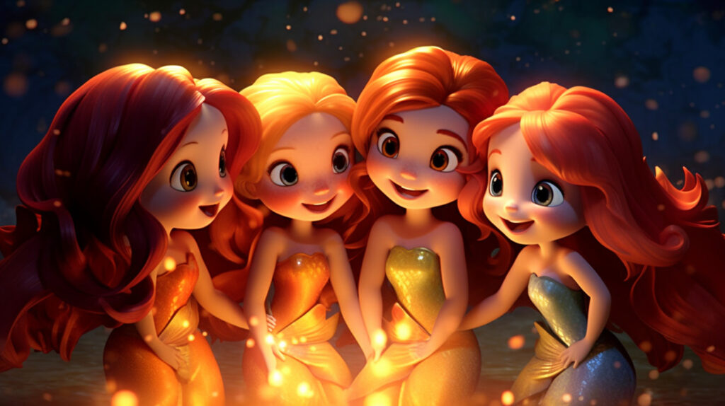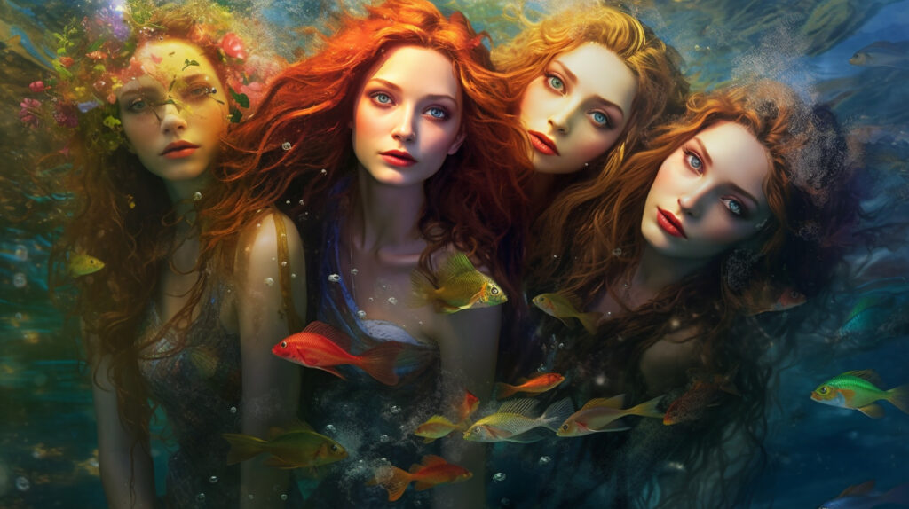 Yine de sık sık, akşam saatlerinde, beş kız kardeş kollarını birbirlerine dolayarak birlikte yüzeye çıkarlardı. Sesleri rastgele bir insanınkinden daha etkileyiciydi ve bir fırtına yaklaşmadan evvel, bir geminin kaybolabileceğinden korktuklarında, geminin önünde yüzerek denizin derinliklerinde bulunabilecek zevklerin büyüleyici müziklerini söylerler ve yolcuların tabana battıklarında korkmamaları için yalvarırlardı. Lakin denizciler şarkıyı anlayamamış ve bunun fırtınanın iç çekişi olduğunu düşünmüşler. Bunlar onlar için asla hoş şeyler değildi, zira gemi batarsa adamlar boğulur ve meyyit vücutları tek başlarına Deniz Kralı’nın sarayına ulaşırdı.