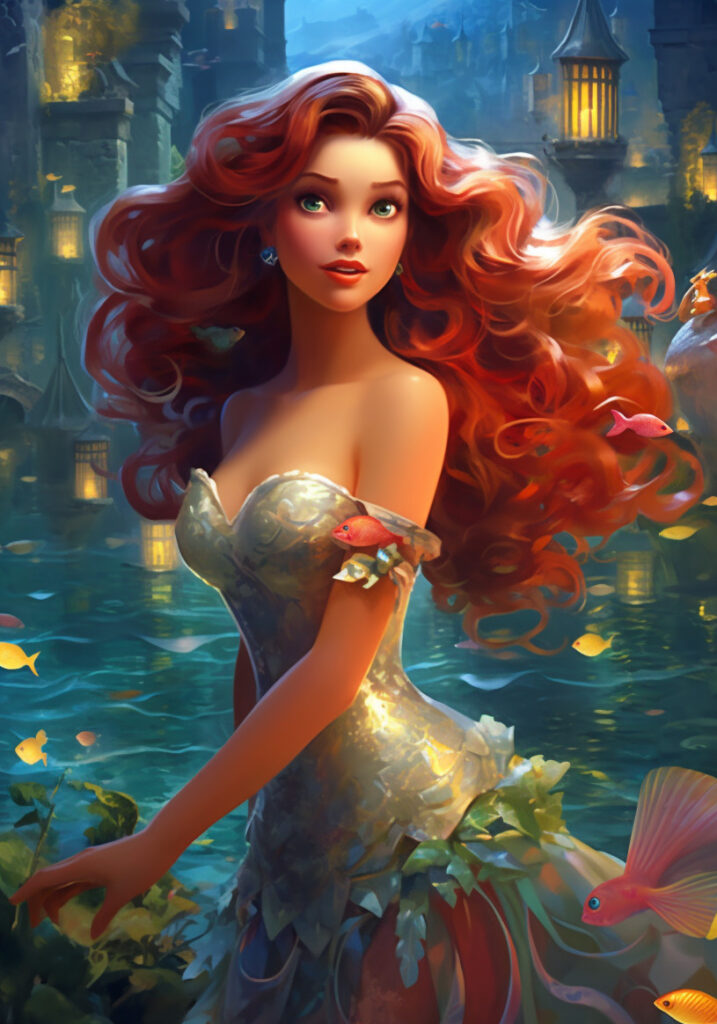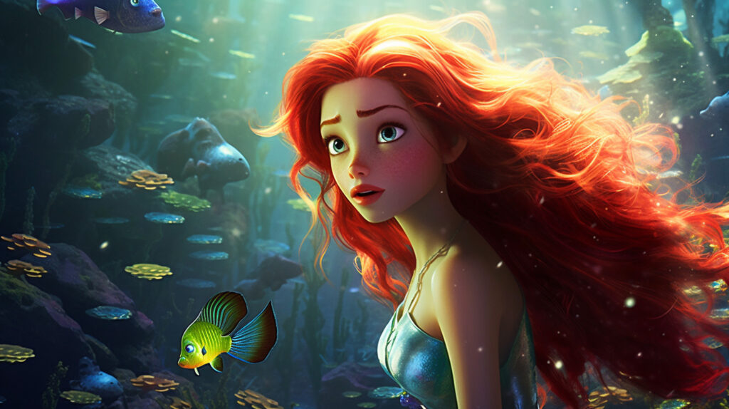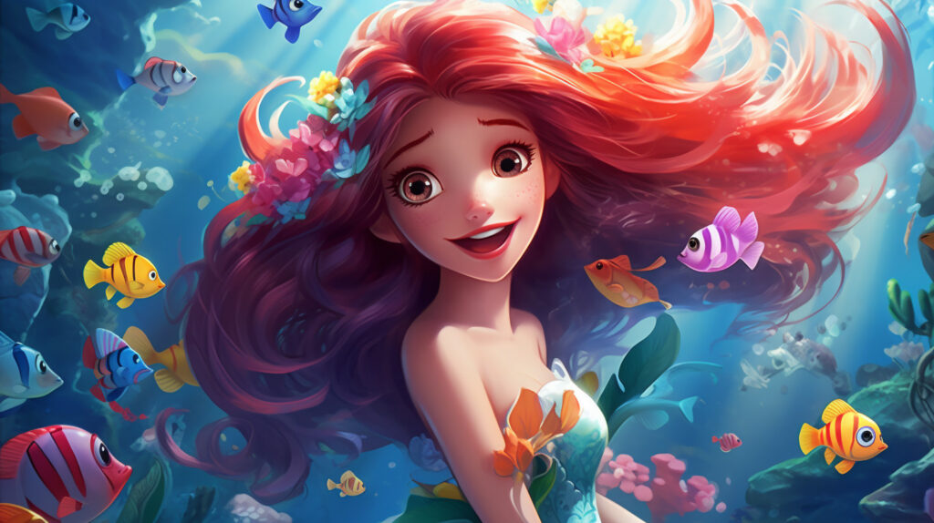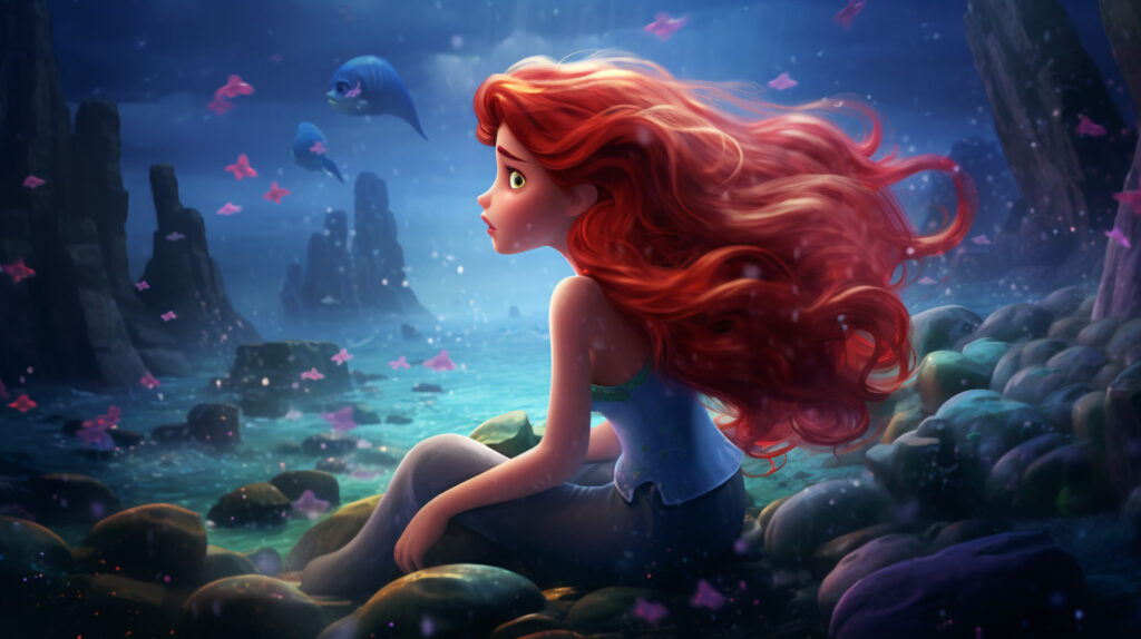 Hiçbir şey ona denizin üstündeki dünya hakkında bir şeyler duymak kadar zevk vermiyordu. Yaşlı büyükannesi ona gemiler, kasabalar, beşerler ve hayvanlar hakkında bildiği her şeyi anlatıyordu. Denizin altındakiler hoş kokmazken, karadaki çiçeklerin hoş koktuğunu; ormandaki ağaçların yemyeşil olduğunu, ağaçların ortasındaki balıkların o kadar tatlı müzikler söylediğini duymak ona şahane ve hoş geliyordu ki, onları dinlemek bir zevkti. Büyükannesi kuşlara balık kaygısı, yoksa küçük denizkızı hiç kuş görmediği için ne demek istediğini anlayamazdı.