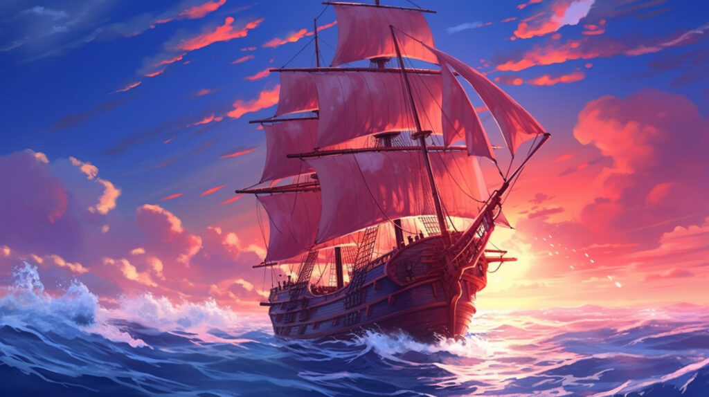 Başını dalgaların üzerinden kaldırdığında güneş yeni batmıştı. Bulutlar kızıl ve altın rengine bürünmüştü ve pırıl pırıl alacakaranlıkta akşam yıldızı tüm hoşluğuyla parlıyordu. Deniz sakin, hava ılık ve tazeydi. Üç direkli büyük bir gemi suyun üzerinde duruyordu; yalnızca bir yelken açılmıştı, zira hiçbir esinti yoktu ve denizciler güvertede ya da armaların ortasında boş boş oturuyorlardı. Gemide müzik ve müzik vardı ve karanlık çöktüğünde, güya tüm ulusların bayrakları havada dalgalanıyormuş üzere yüzlerce renkli fener yakıldı.