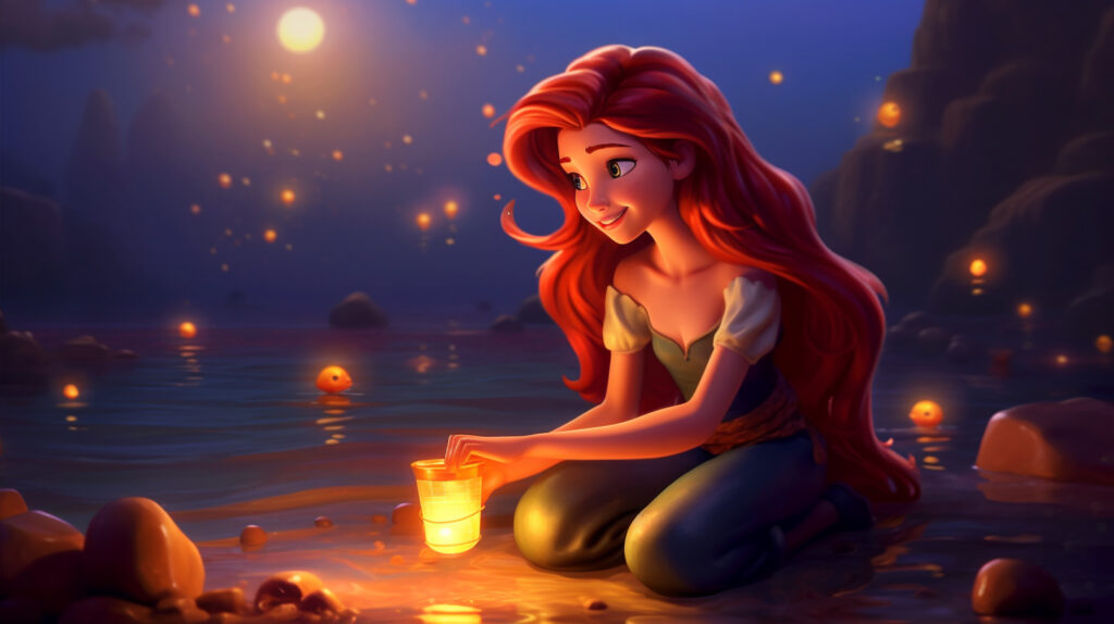 Gittikçe insanlardan daha çok hoşlanmaya başladı ve dünyaları kendisininkinden çok daha büyük görünen bu beşerlerle birlikte dolaşabilmeyi daha çok diledi. Onlar gemilerle denizin üzerinde uçabiliyor ve bulutların çok üzerindeki yüksek doruklara çıkabiliyorlardı ve sahip oldukları topraklar, ormanları ve tarlaları, onun görüş alanının çok ötesinde uzanıyordu. Bilmek istediği o kadar çok şey vardı ki! Fakat kız kardeşleri tüm sorularına yanıt veremiyorlardı. Bunun üzerine, haklı olarak “denizin üstündeki topraklar” dediği üst dünya hakkında her şeyi bilen yaşlı büyükannesine gitti.