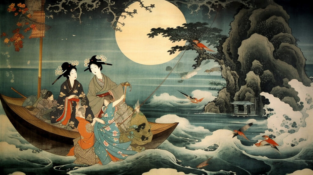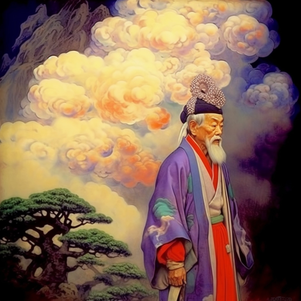 “Ben sana Jofuku tarafından gönderildim, dualarına karşılık olarak rüyanda Sonsuz Ömür Ülkesi’ni görmene müsaade verdi. Fakat orada yaşamaktan bıktın ve ölmek için kendi ülkene dönmene müsaade verilmesi için yalvardın. Jofuku, seni deneyebilmek için denize düşmene müsaade verdi ve sonra seni yutması için bir köpekbalığı gönderdi. Vefat arzun gerçek değildi, zira o anda bile yüksek sesle bağırdın ve yardım istedin.”