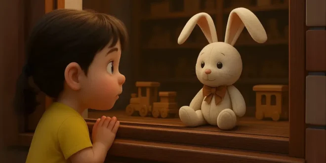 Defne en çok rafın en üst köşesindeki bez tavşanı severmiş. Kulakları biraz eğilmiş, elbisesi solmuş ancak gözleri hâlâ pırıl pırılmış. Her geldiğinde tavşanın yanına çıkar, onu kucağına alıp fısıltıyla konuşurmuş.