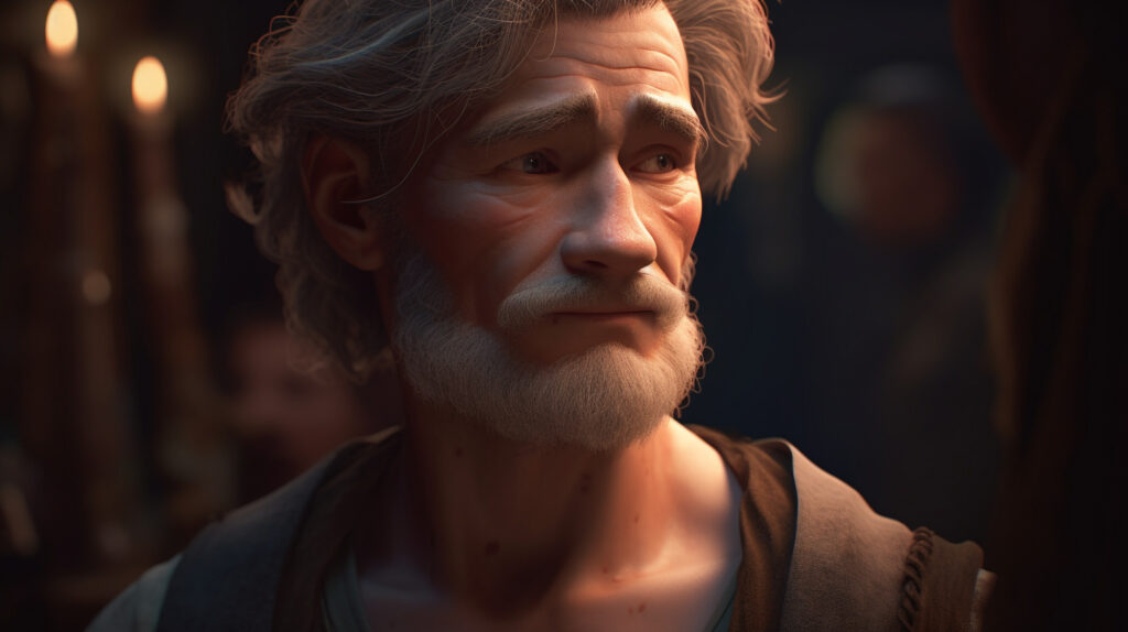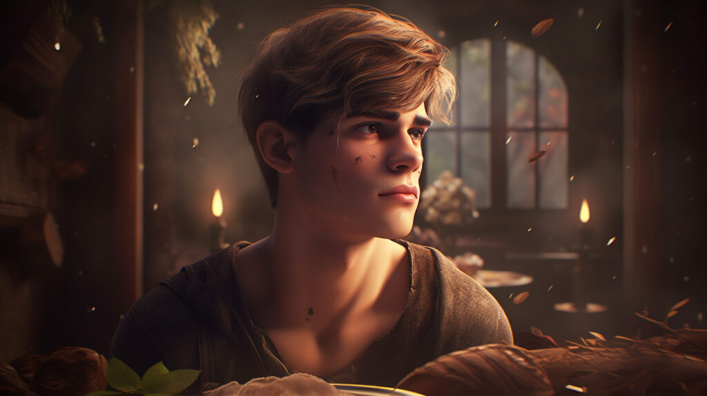 Bir hana geldiğinde durdu, tüm ekmeğini yedi ve bir bardak bira için son kuruşunu verdi. Sonra ineğini annesinin köyüne gerçek sürdü. Öğlen vakti yaklaştıkça sıcaklık daha da arttı, sonunda kendini içinden geçmesi bir saatten fazla sürecek geniş bir fundalıkta buldu. O kadar terlemiş ve kavrulmuştu ki lisanı damağına yapışmıştı.