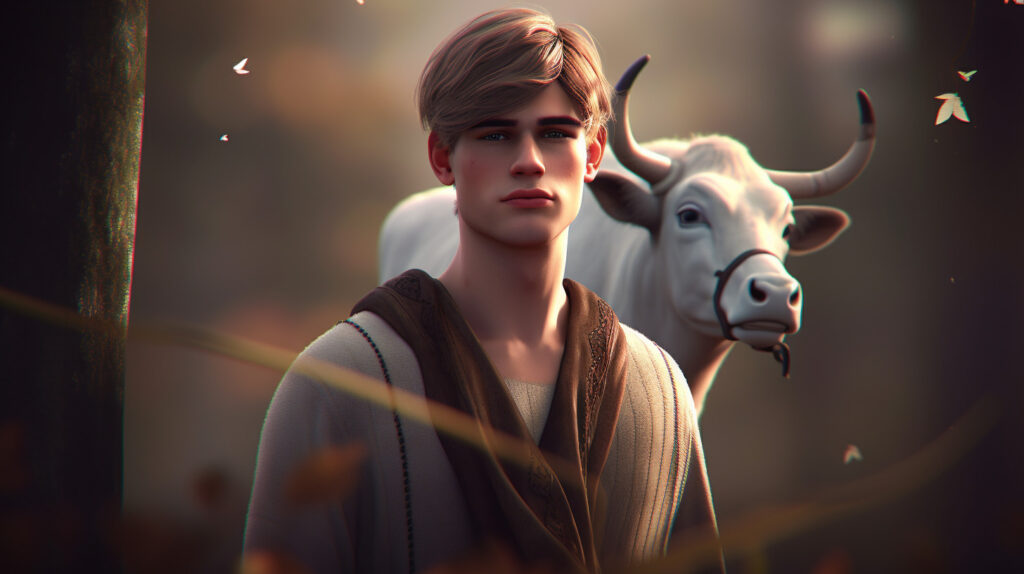 “Buna bir deva bulabilirim” diye düşündü; “şimdi ineğimi sağacağım ve susuzluğumu gidereceğim.” İneği bir ağacın kütüğüne bağladı ve süt sağmak için deri başlığını tuttu, fakat bir damla bile sağamadı.
