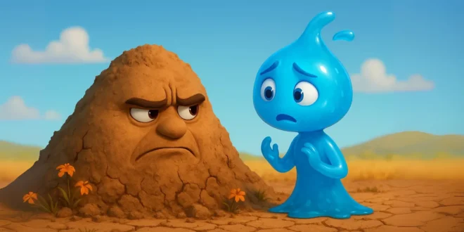 Bir gün, gökyüzü grileşmiş, bulutlar ağırlaşmış ve yağmur başlamış. Su, gökyüzünden tatlı tatlı inmiş, toprakla buluşmuş. “Merhaba,” demiş su, “bugün de seni beslemeye geldim.” Fakat toprak öfkesini gizleyememiş.