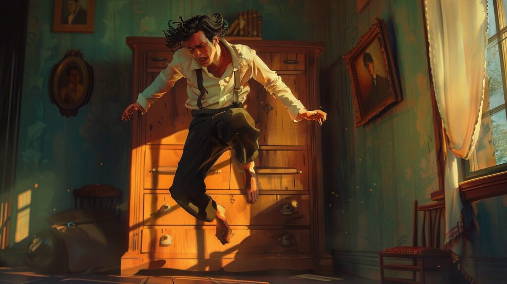 Beyefendi yoluna devam etmiş ve geceyi geçirmek için bir hana gitmiş, han o kadar doluymuş ki, onu iki yataklı bir odaya yerleştirmek zorunda kalmışlar, başka yatakta da öteki bir yolcu yatacakmış. Öbür adam çok beğenilen biriymiş ve birbirleriyle çok düzgün anlaşmışlar; lakin sabahleyin ikisi de kalkarken, beyefendi başkasının pantolonunu çekmecenin topuzlarına asıp odanın öbür ucuna koştuğunu ve içine atlamaya çalıştığını görünce şaşırmış.