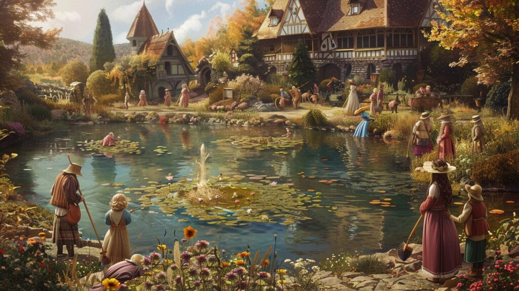Sonra beyefendi tekrar seyahatine devam etmiş; bir köye gelmiş, köyün dışında bir gölet varmış ve göletin etrafında bir insan kalabalığı varmış. Ellerinde tırmıklar, süpürgeler ve dirgenler, gölete gerçek uzanıyorlarmış; ve beyefendi sorunun ne olduğunu sormuş. “Sorun,” demişler, “yeterince sorun olması! Ay gölete yuvarlandı ve onu bir türlü çıkaramıyoruz!” Bunun üzerine beyefendi bir kahkaha patlatmış ve onlara gökyüzüne bakmalarını, bunun yalnızca sudaki gölge olduğunu söylemiş. Lakin onu dinlememişler ve utanç verici bir halde hakaret etmişler, o da olabildiğince çabuk oradan uzaklaşmış.