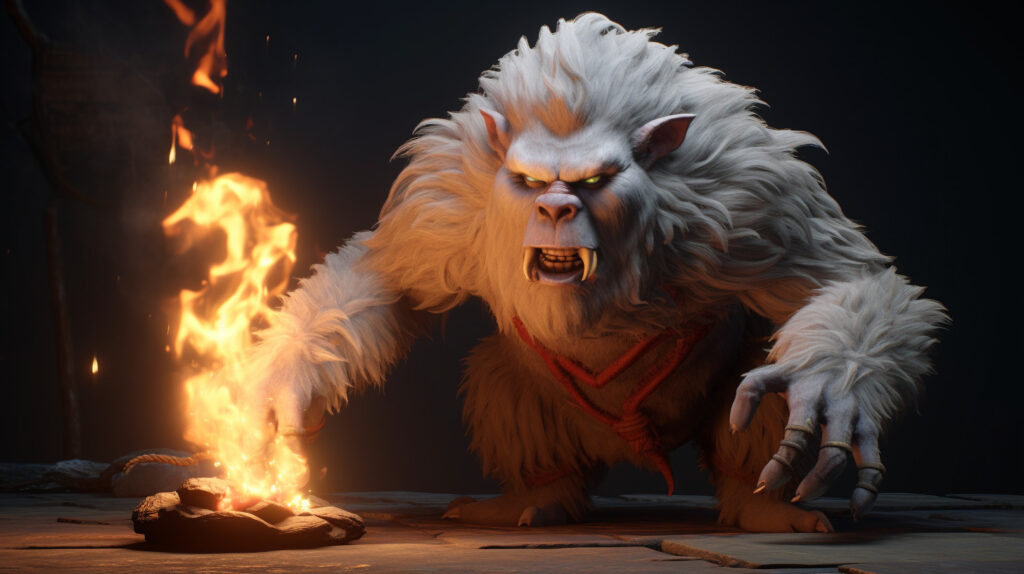“Burası benim saklanma yerim!” diye hırlamış yeti. “Kimse beni göremez ve buradan canlı çıkamaz.”